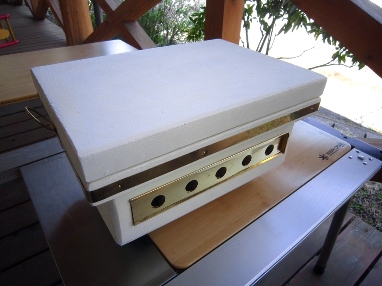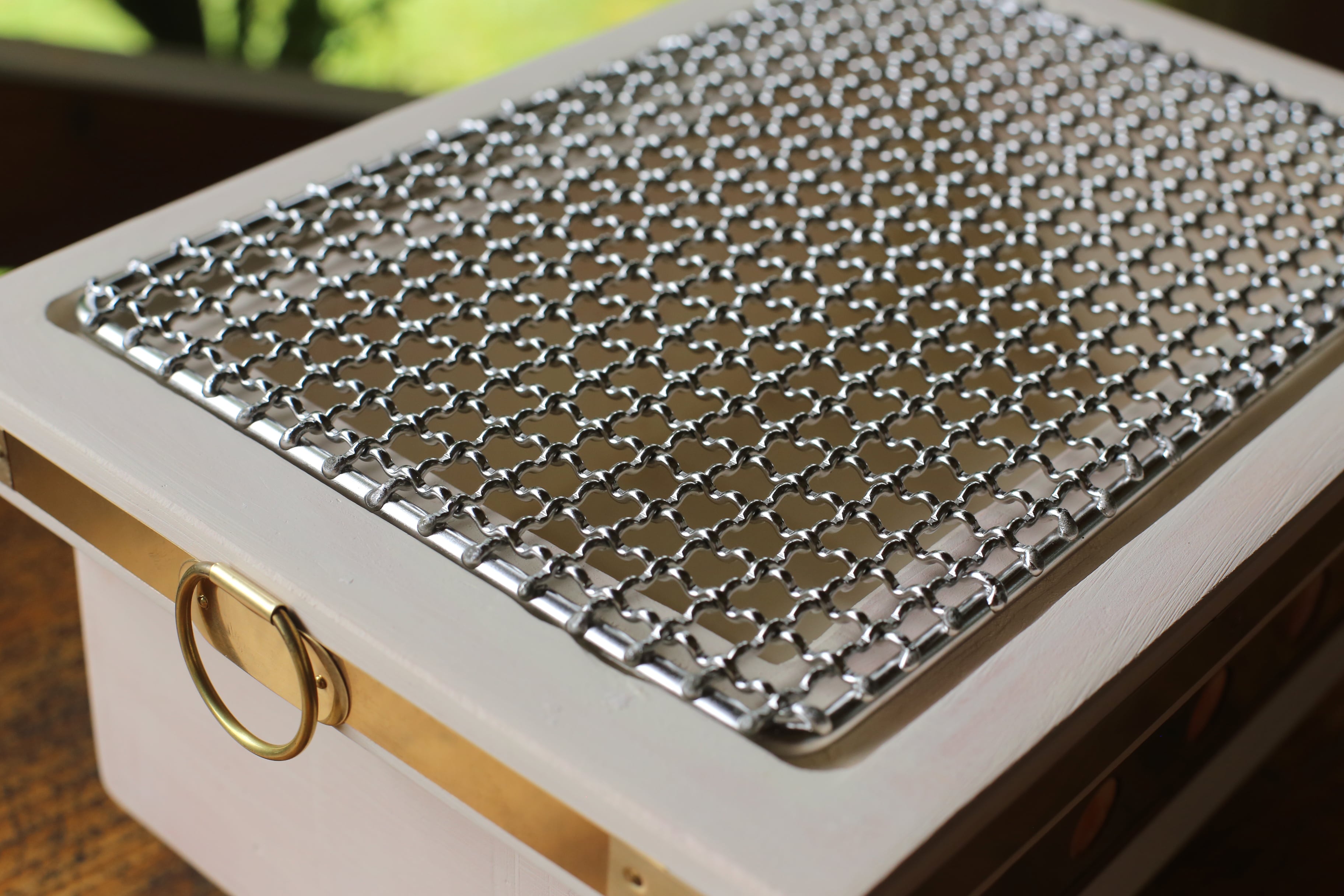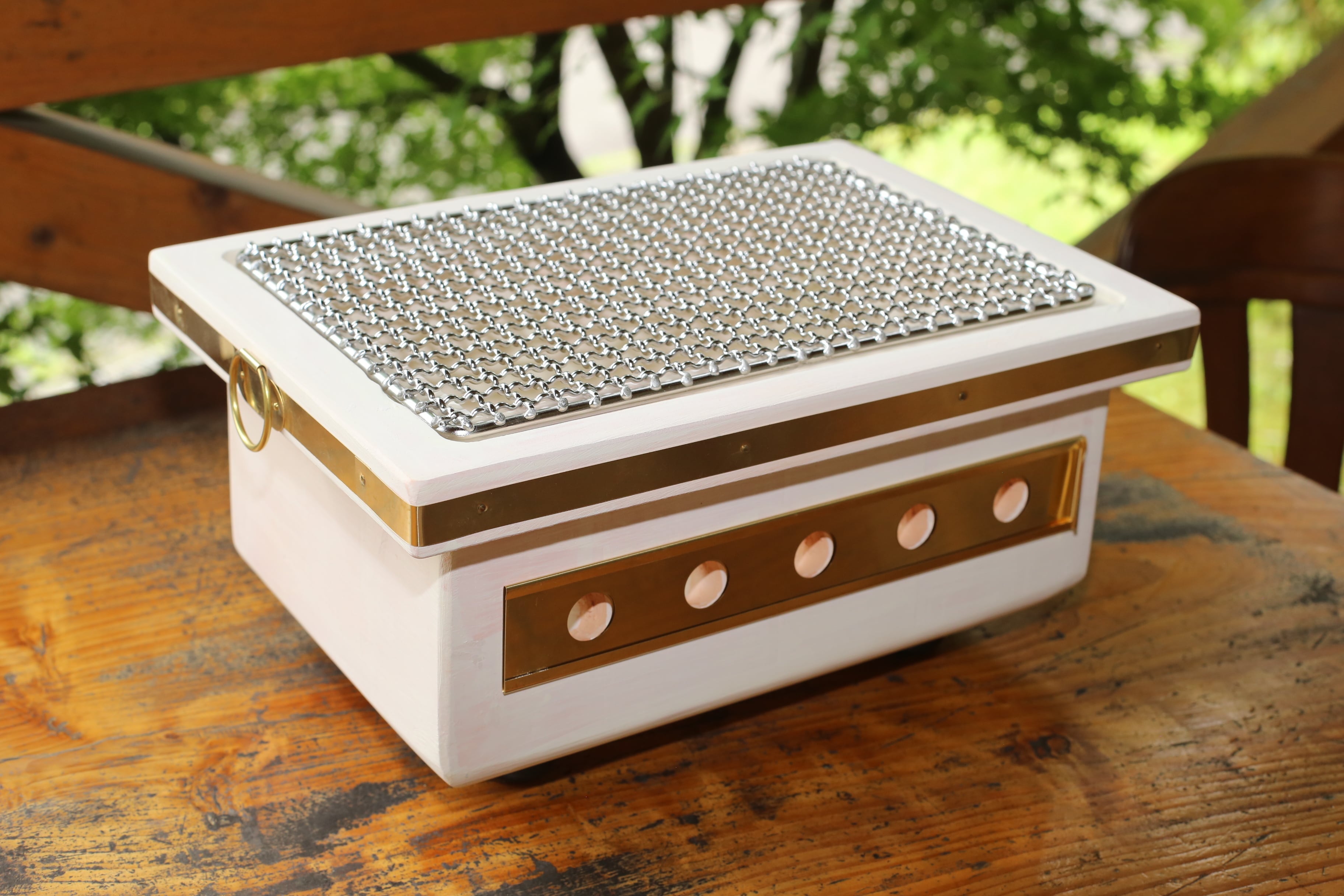 蓋をかぶせて空気穴を閉めると消し炭になり、消し炭は再利用できます。